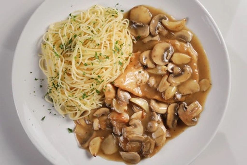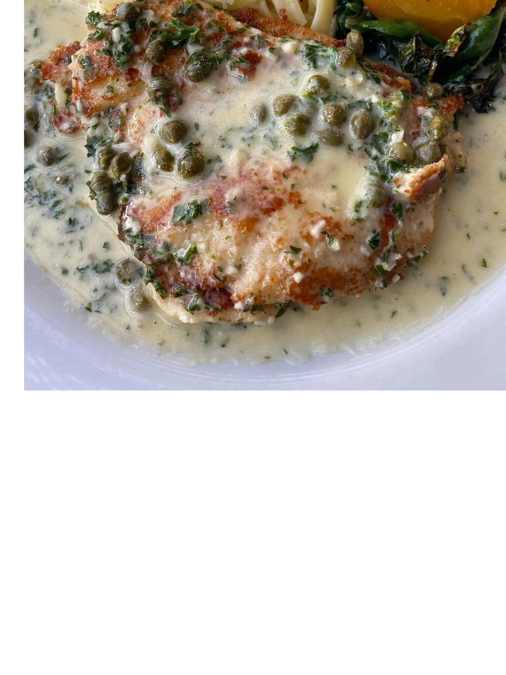 Chicken Scaloppine with Mushrooms, Artichokes, Pancetta, capers with Lemon Beurre Blanc