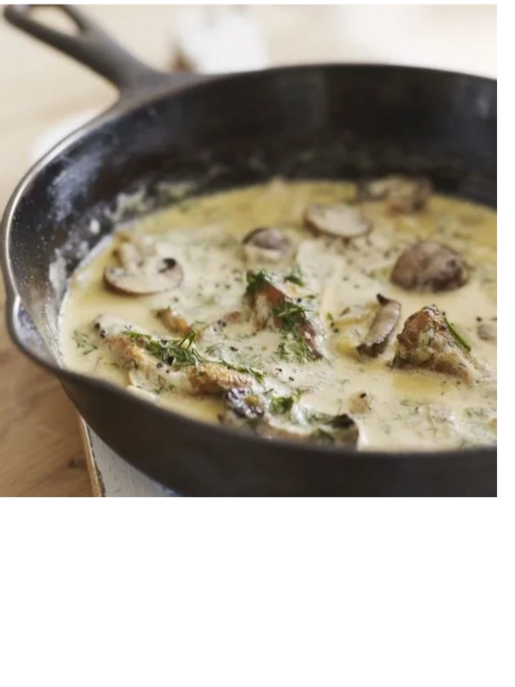Chicken in White Wine Sauce with Mushrooms and Dill